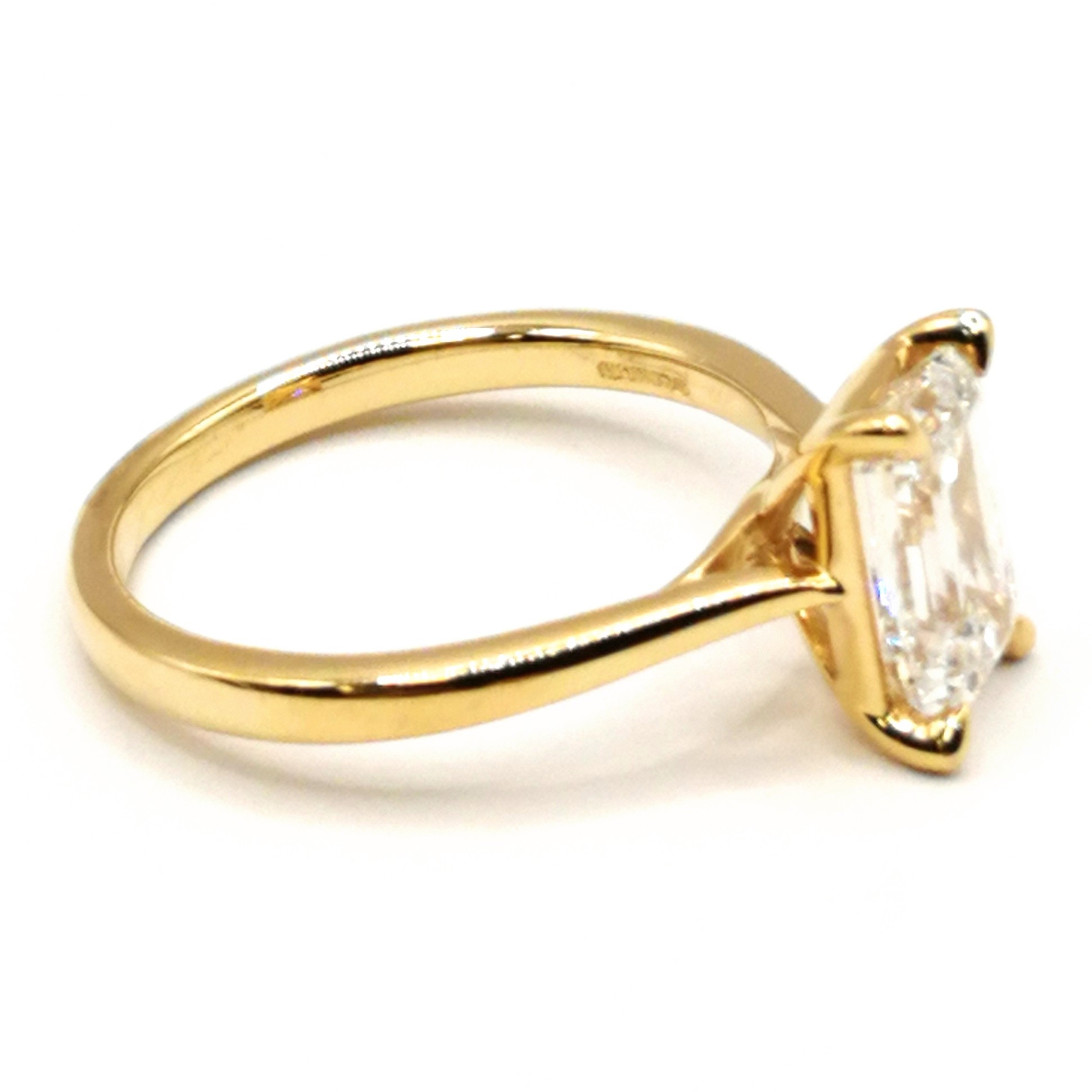 Crafted in luxurious platinum, the ring features gently tapered shoulders that draw the eye towards the centre stone, creating a refined and timeless silhouette. Hallmarked in London in 2025, this piece is both contemporary and enduring, making it a perfect choice for an engagement ring or a meaningful statement of love.
