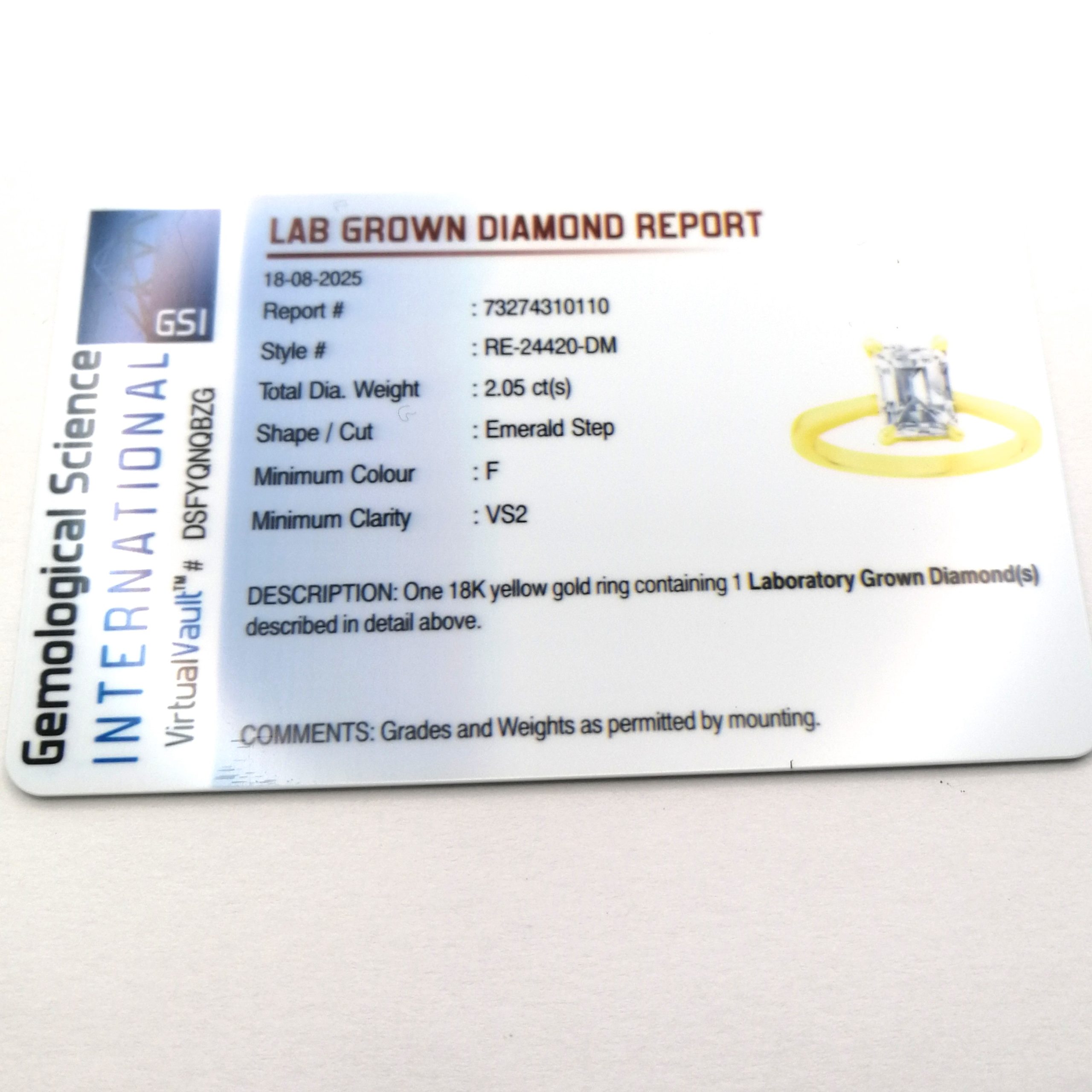 The diamond is certificated, graded F colour and VS2 clarity, ensuring exceptional sparkle and quality with ethical peace of mind.