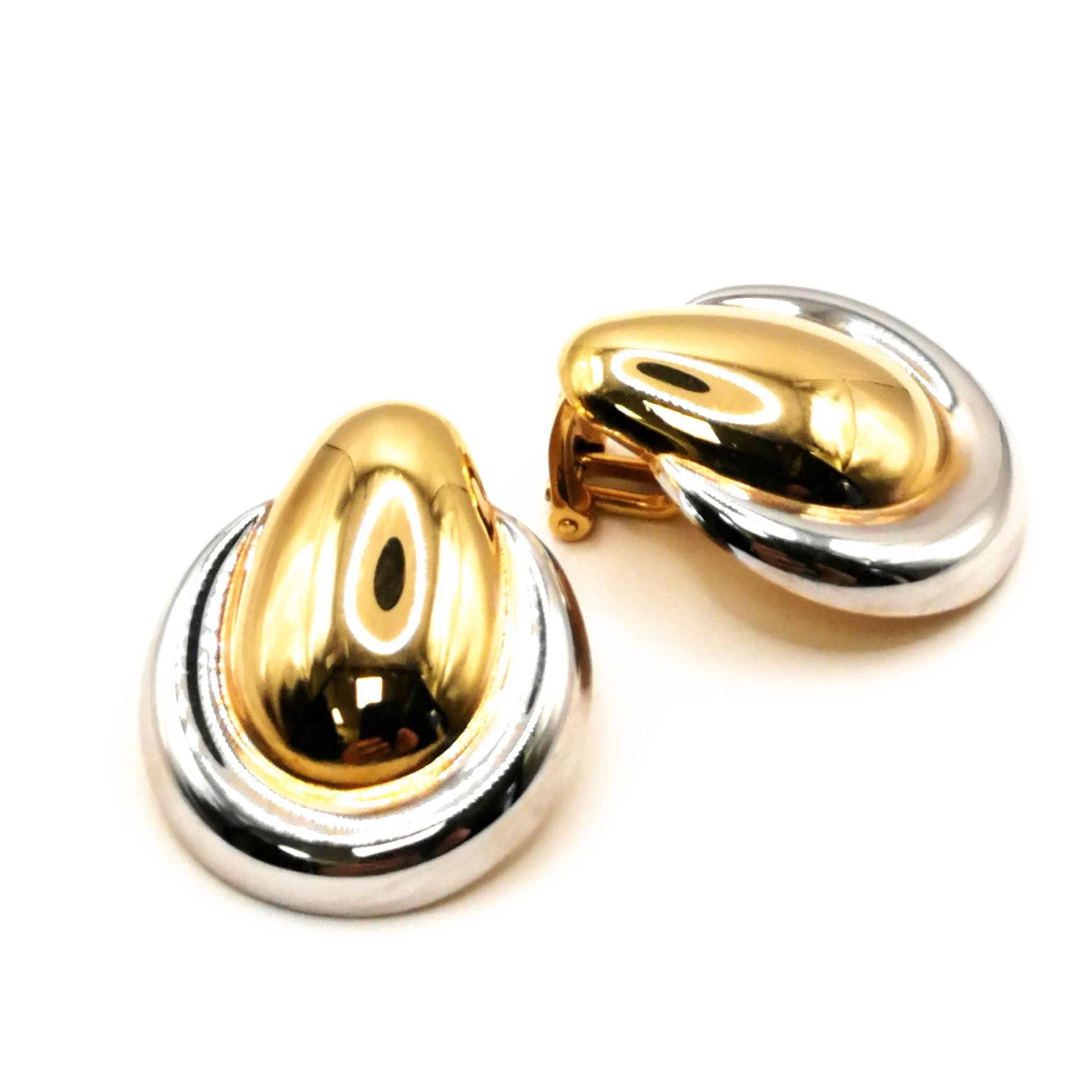 Elegant and timeless, these 18ct Two Colour Gold Clip-On Earrings by the esteemed Mappin & Webb are a true statement of refined British craftsmanship. Featuring a striking combination of yellow and white gold, the sculpted design offers effortless sophistication with a versatile two-tone finish that complements any ensemble.