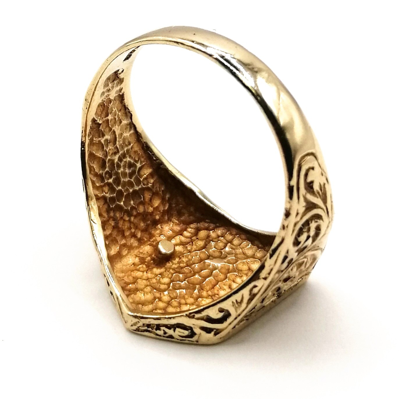 The ring features a tapered shank for a comfortable fit, while the filigree design on the shoulders adds a touch of refined artistry. Fully hallmarked London 1998, this piece assures both quality and authenticity.