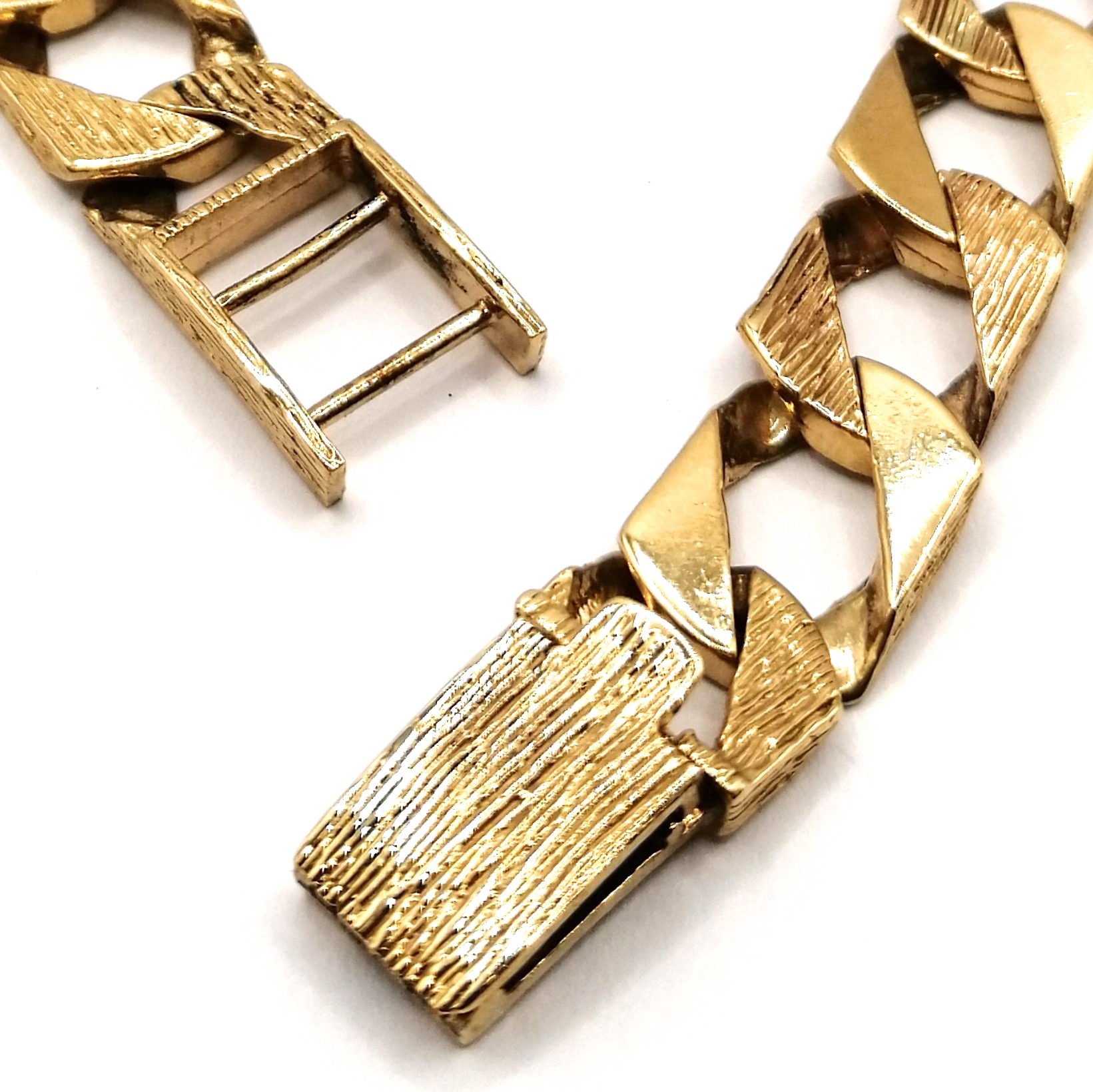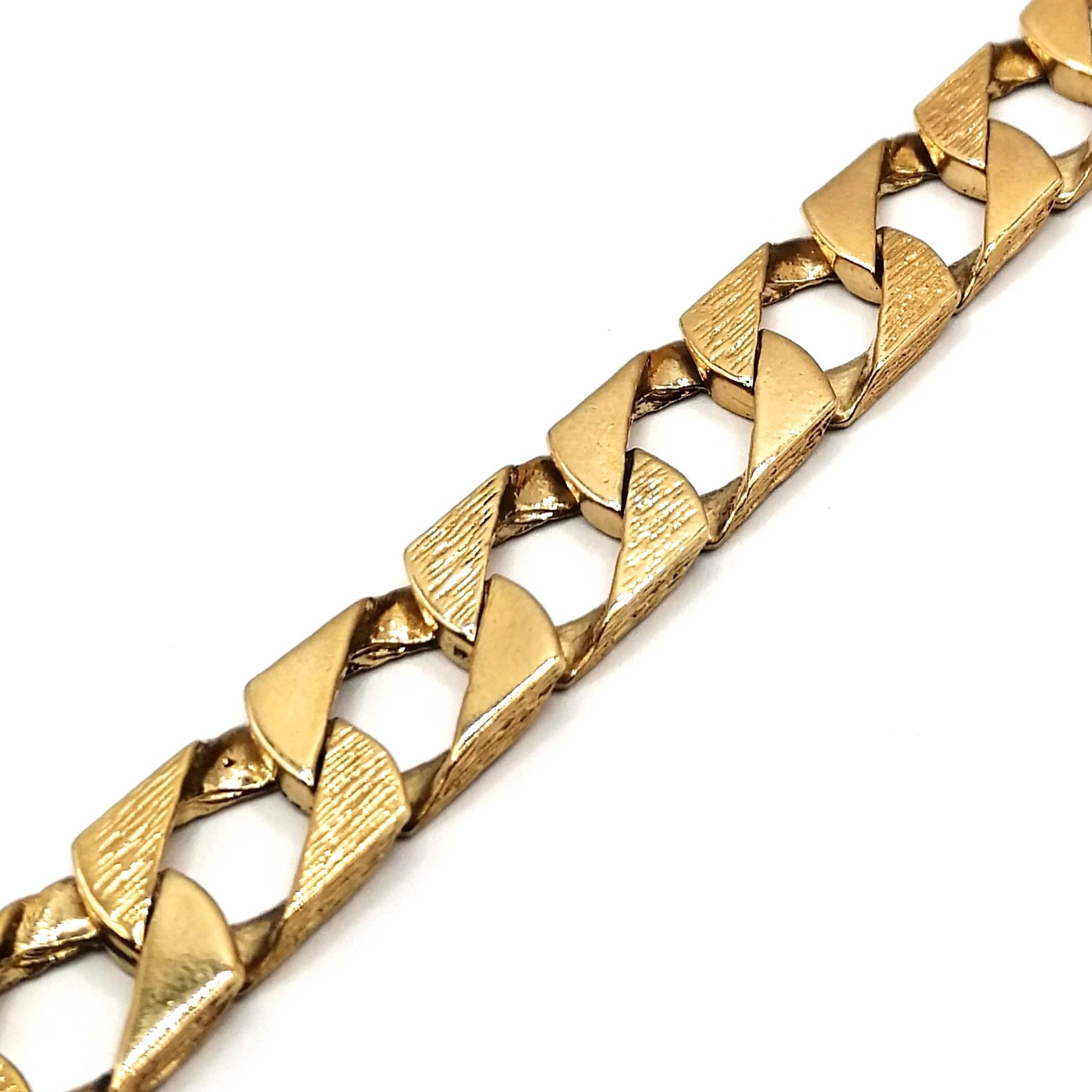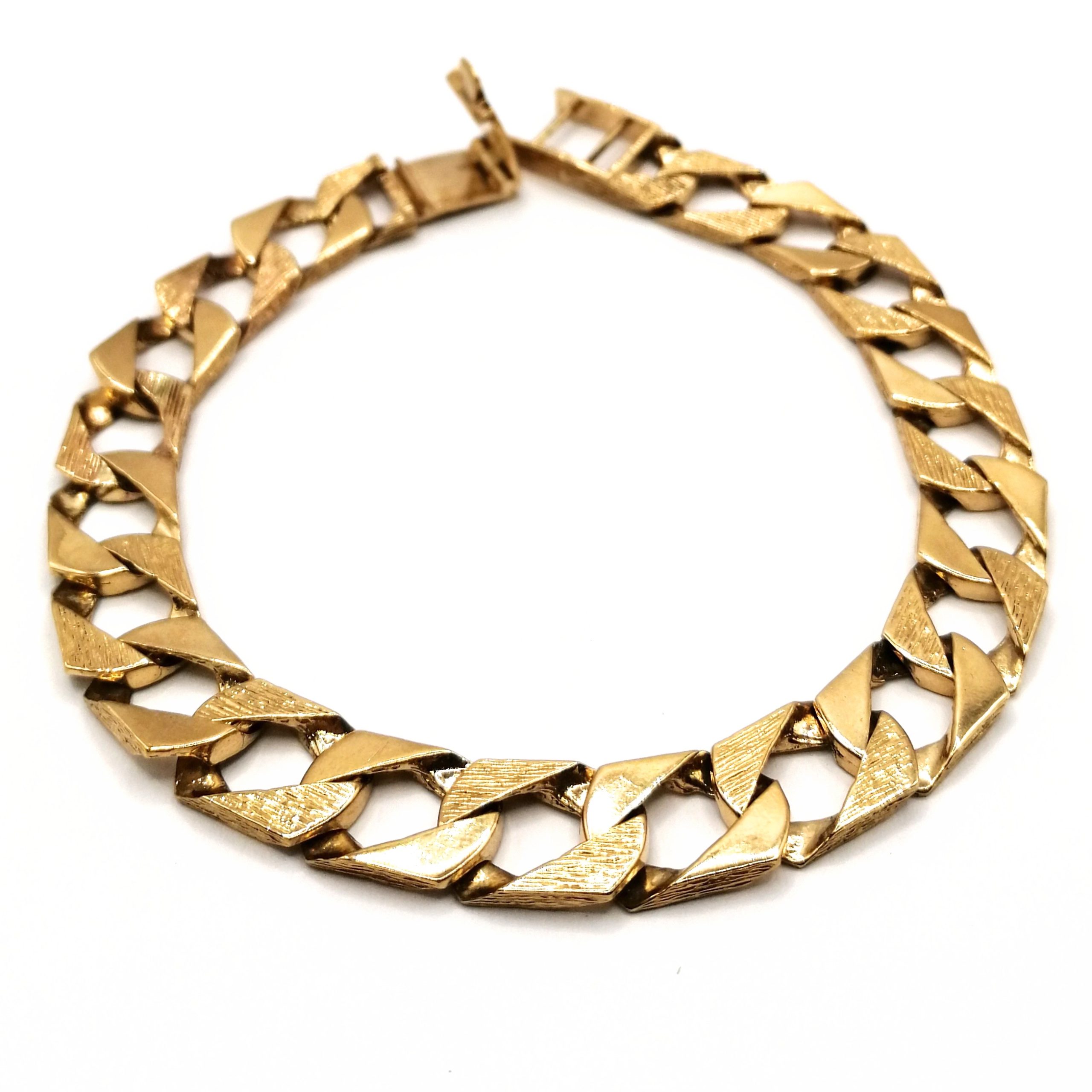 About the 9ct Gold Barked & Plain Curb Link Bracelet 28.4g