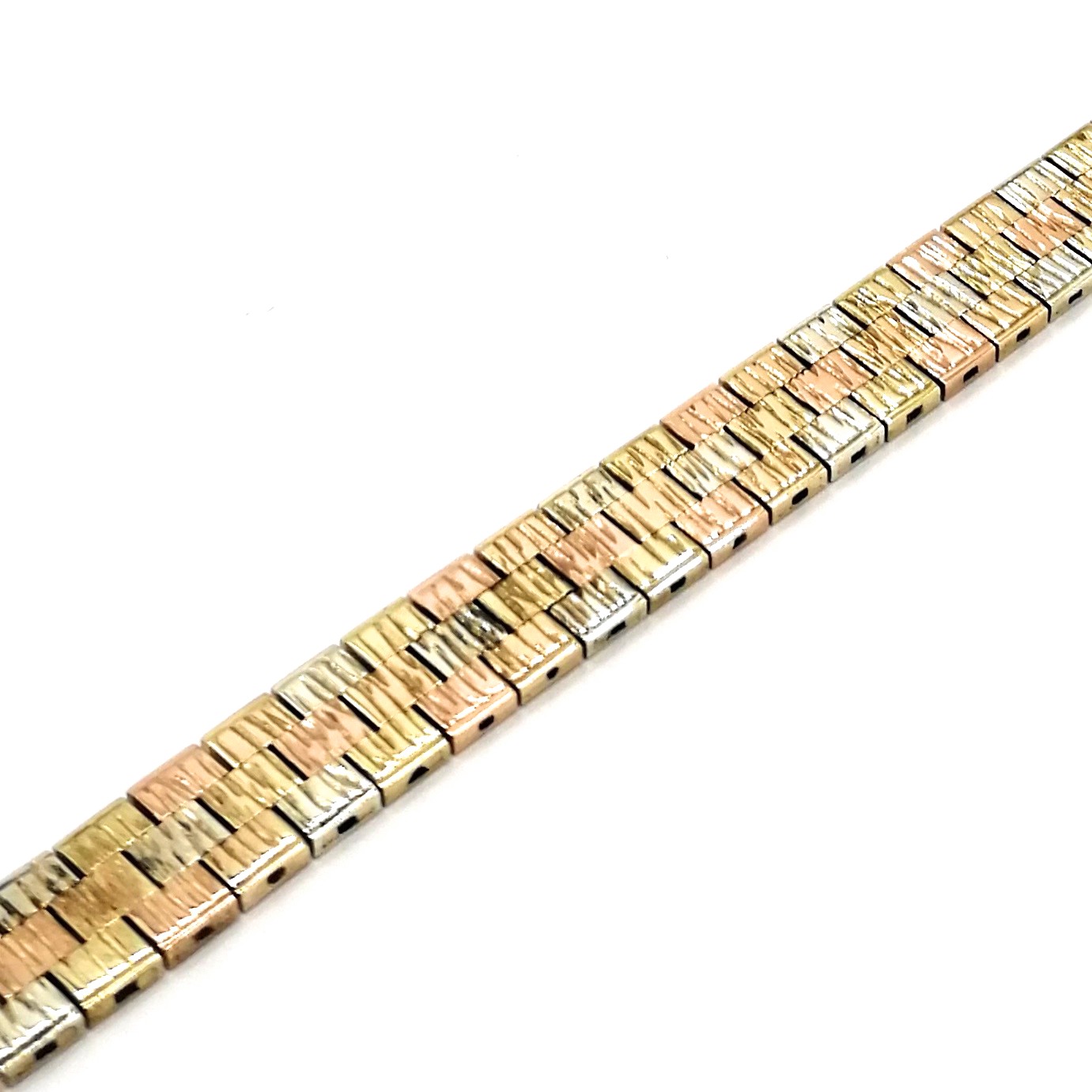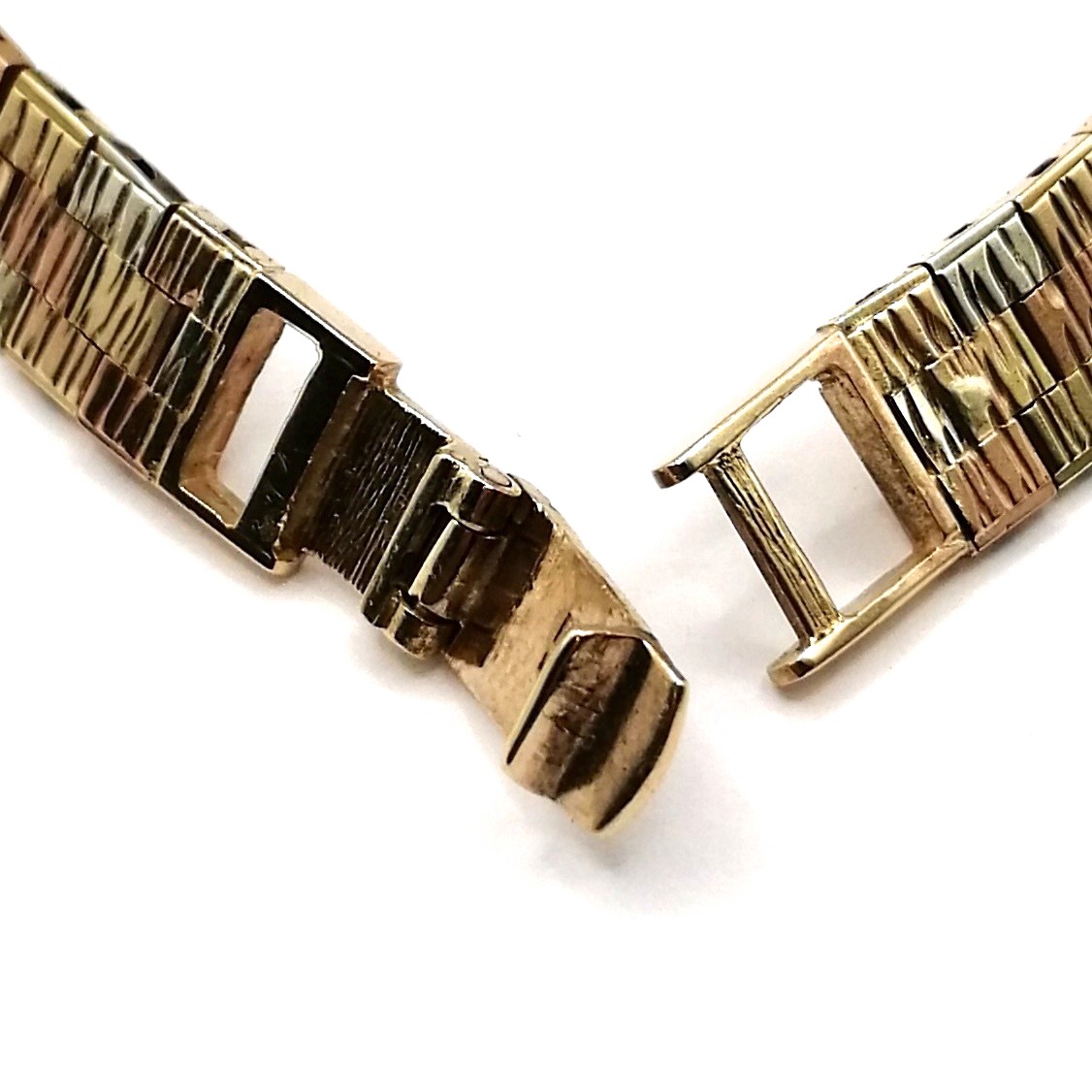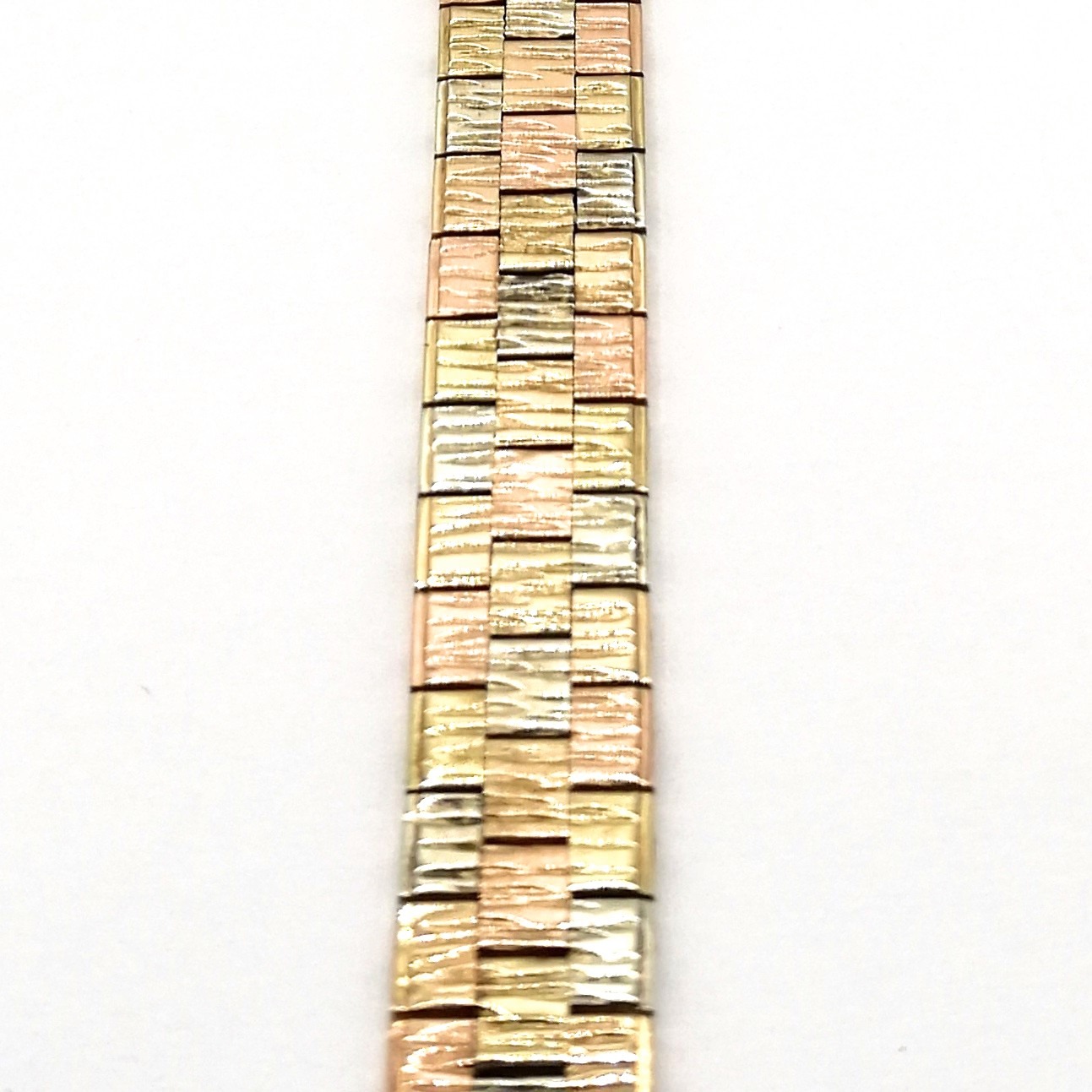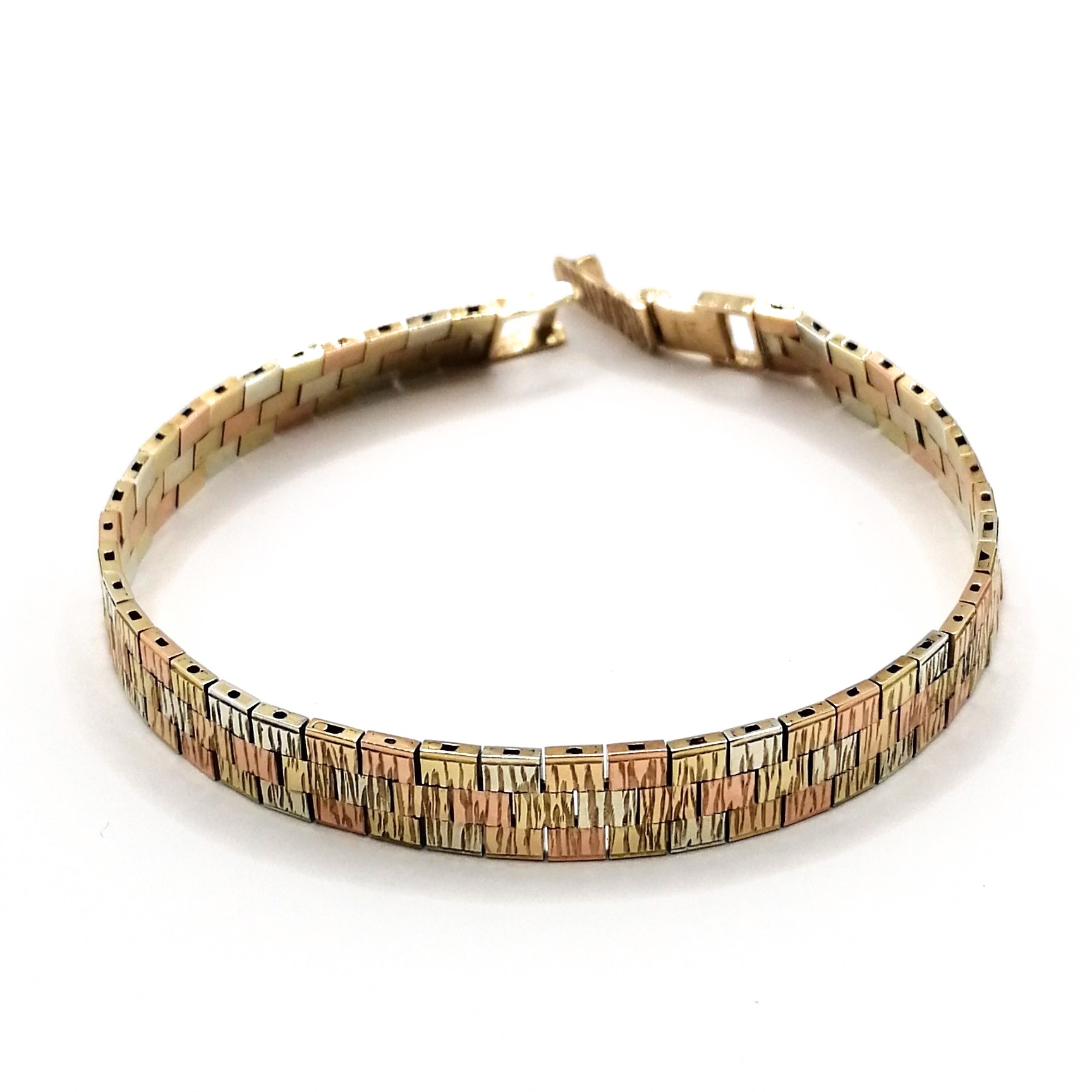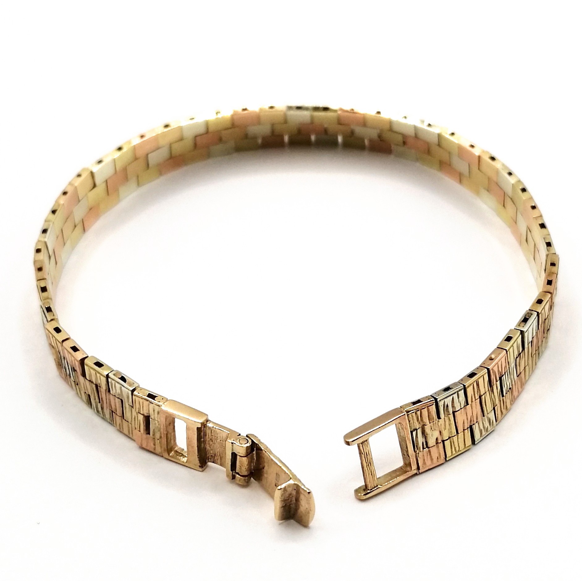 9ct Three Colour Gold Brick Link Bracelet – Hallmarked Birmingham 1976