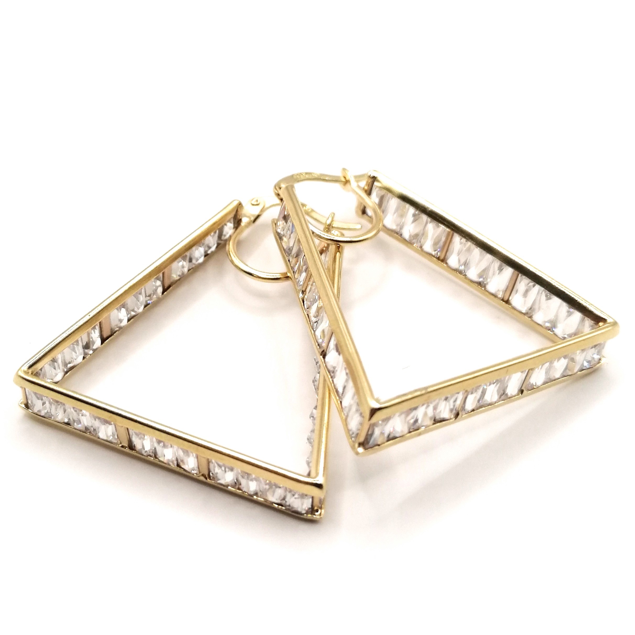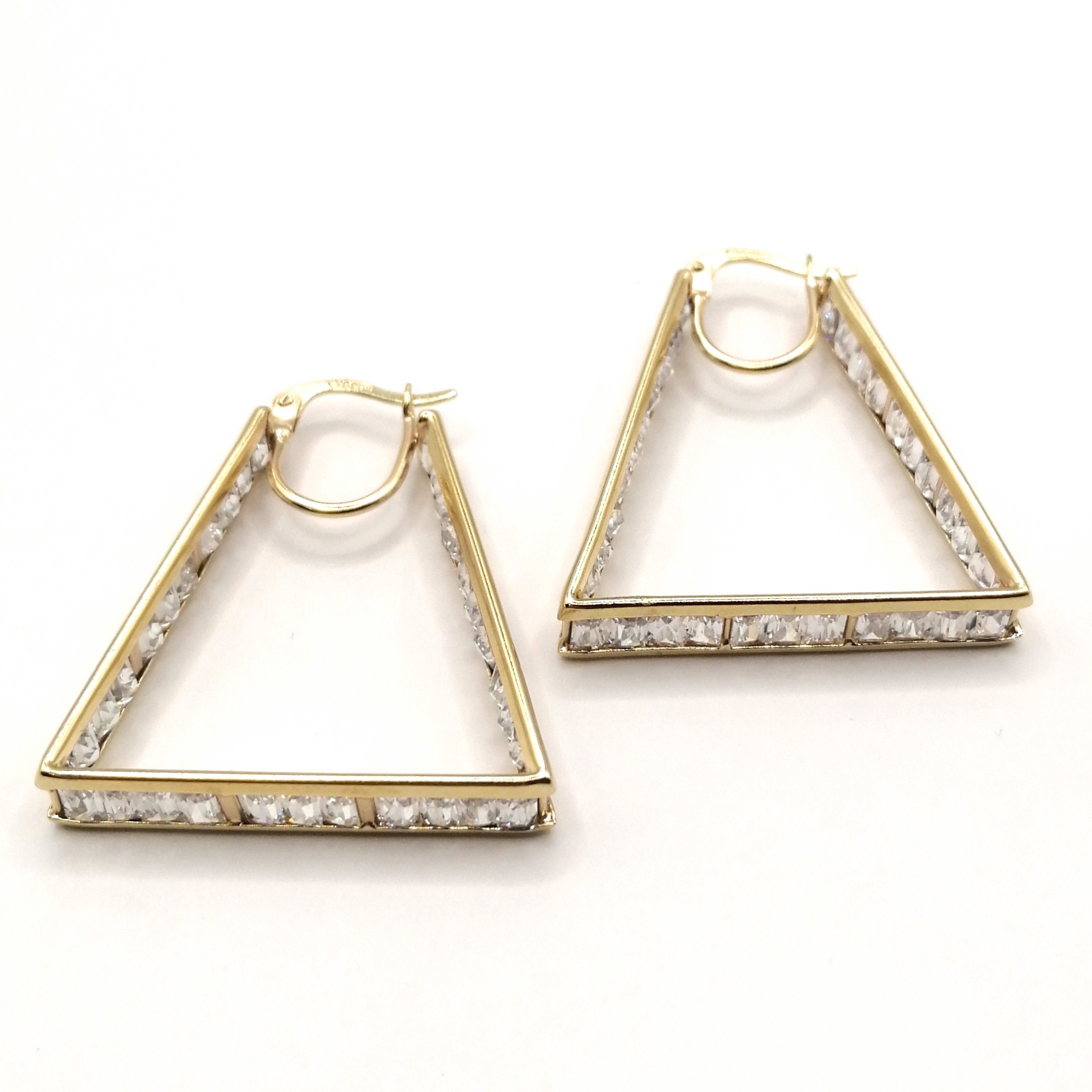 9ct Gold Cubic Zirconia Triangular Hoop Earrings
