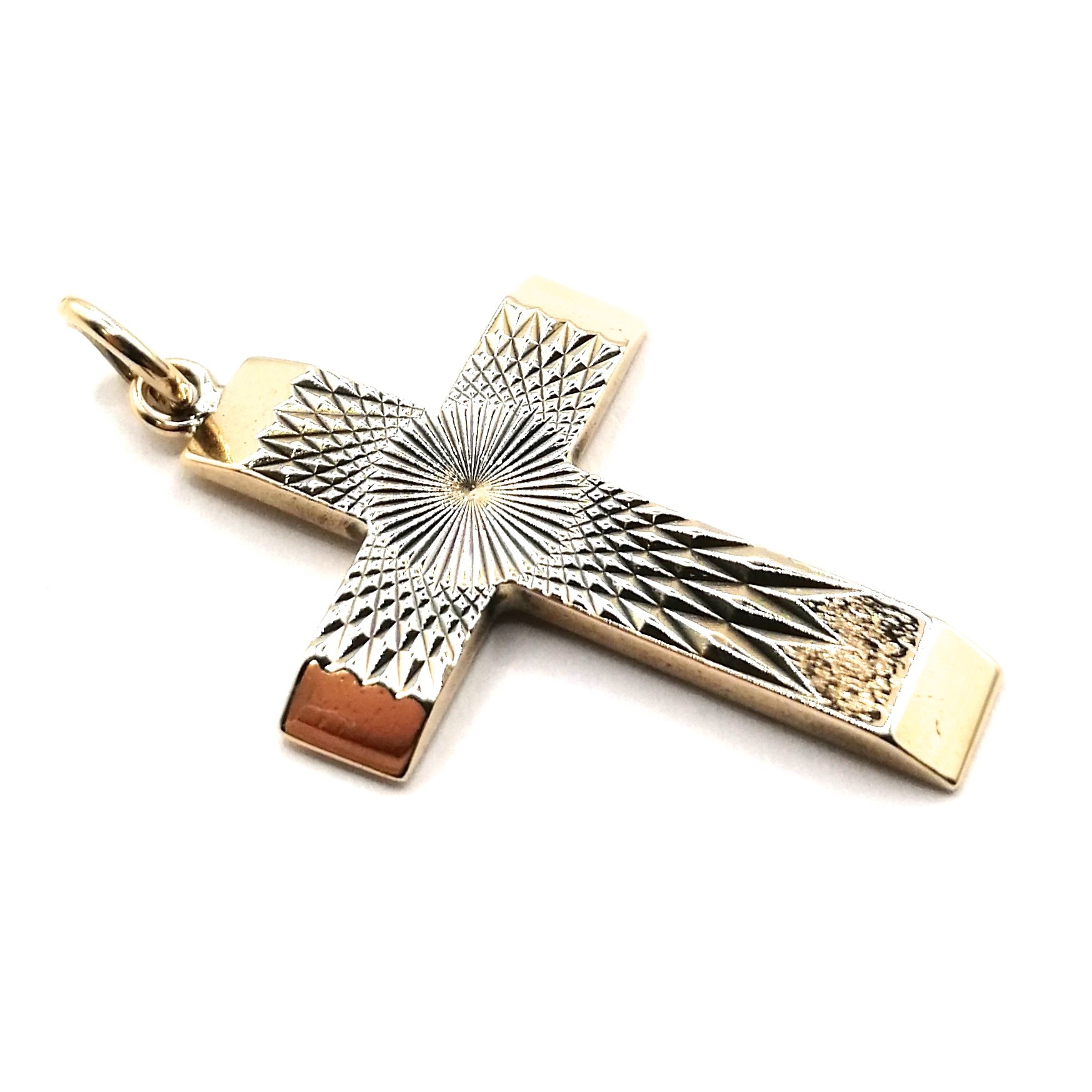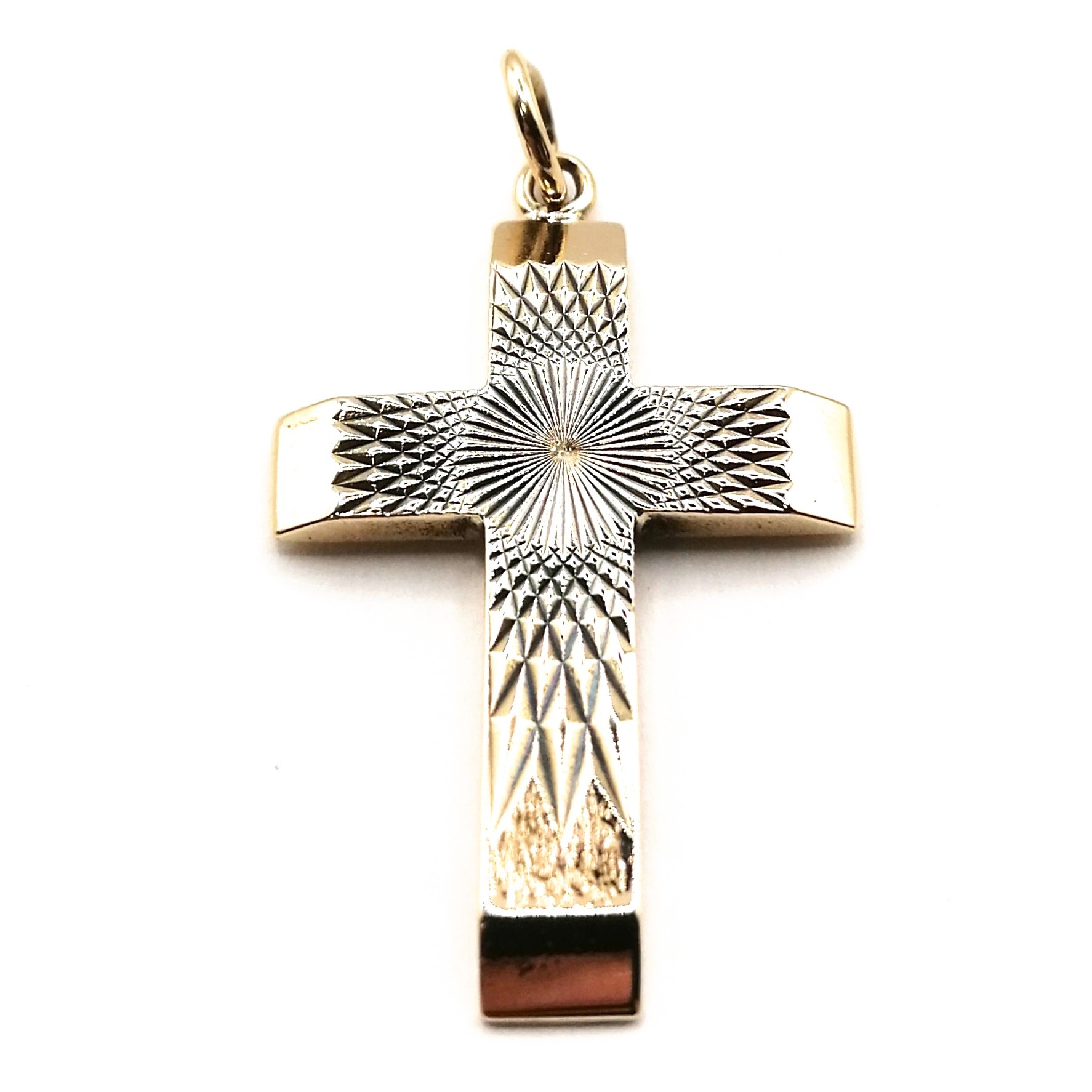 9ct Gold Diamond Cut Cross Pendant – Hallmarked Birmingham 1973