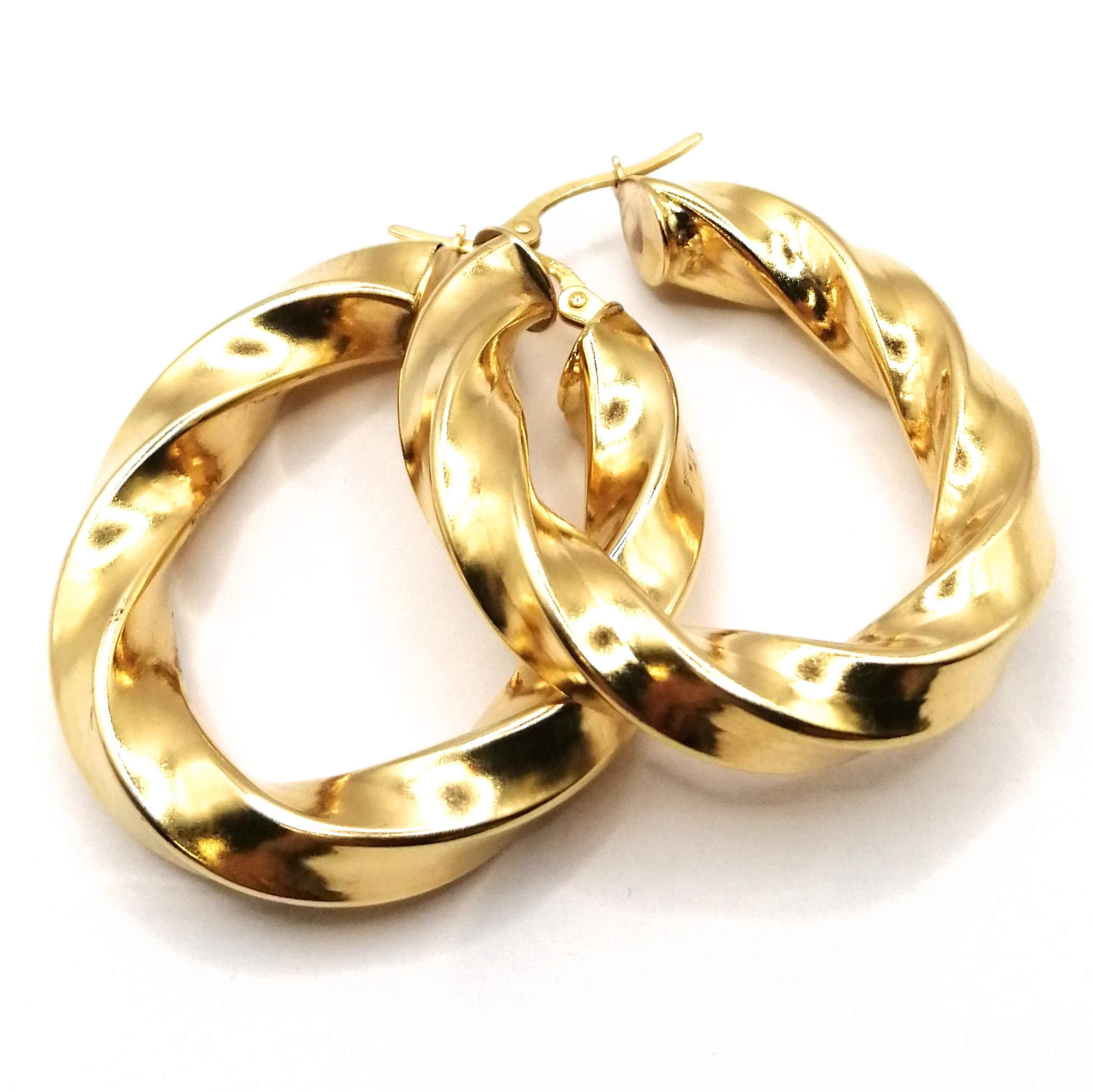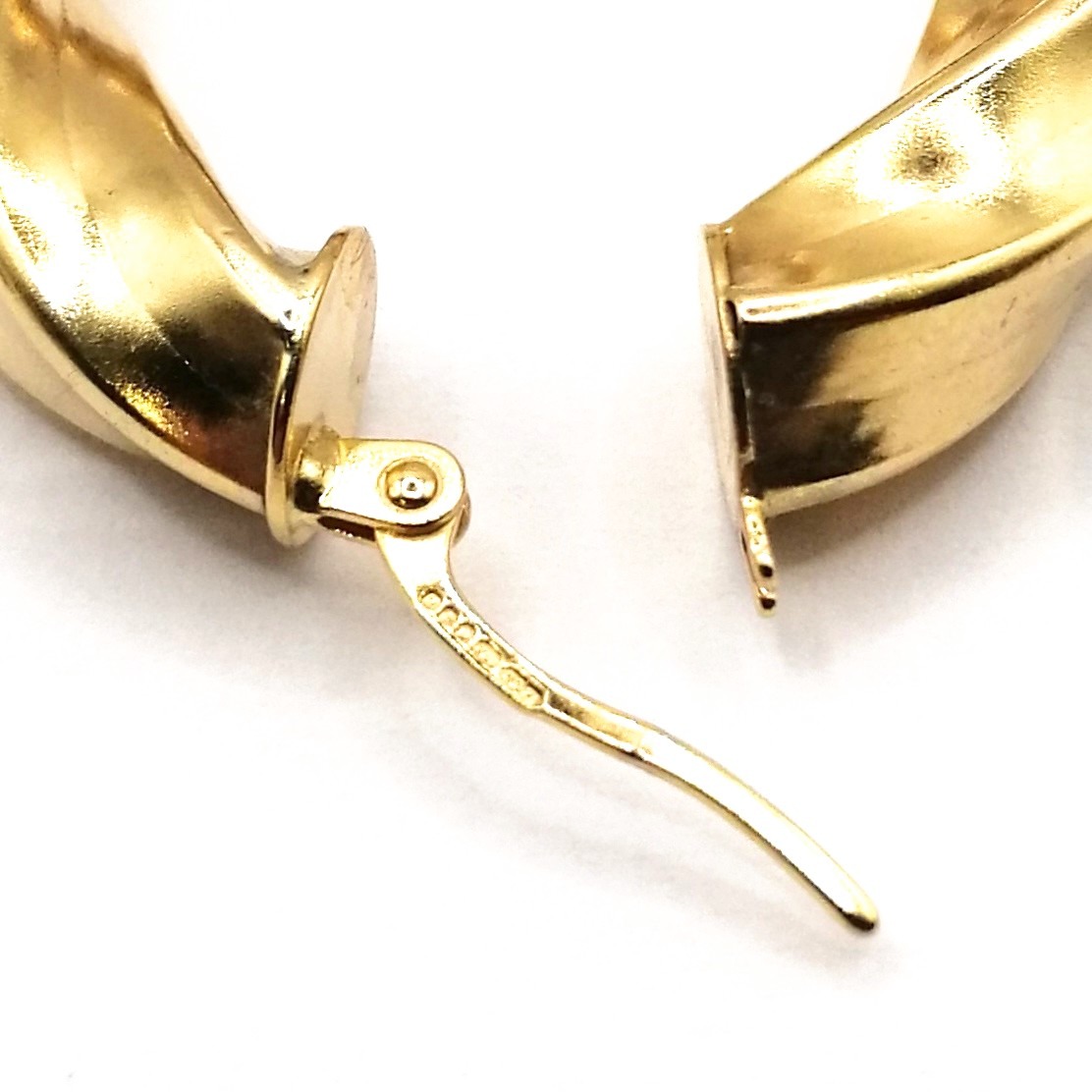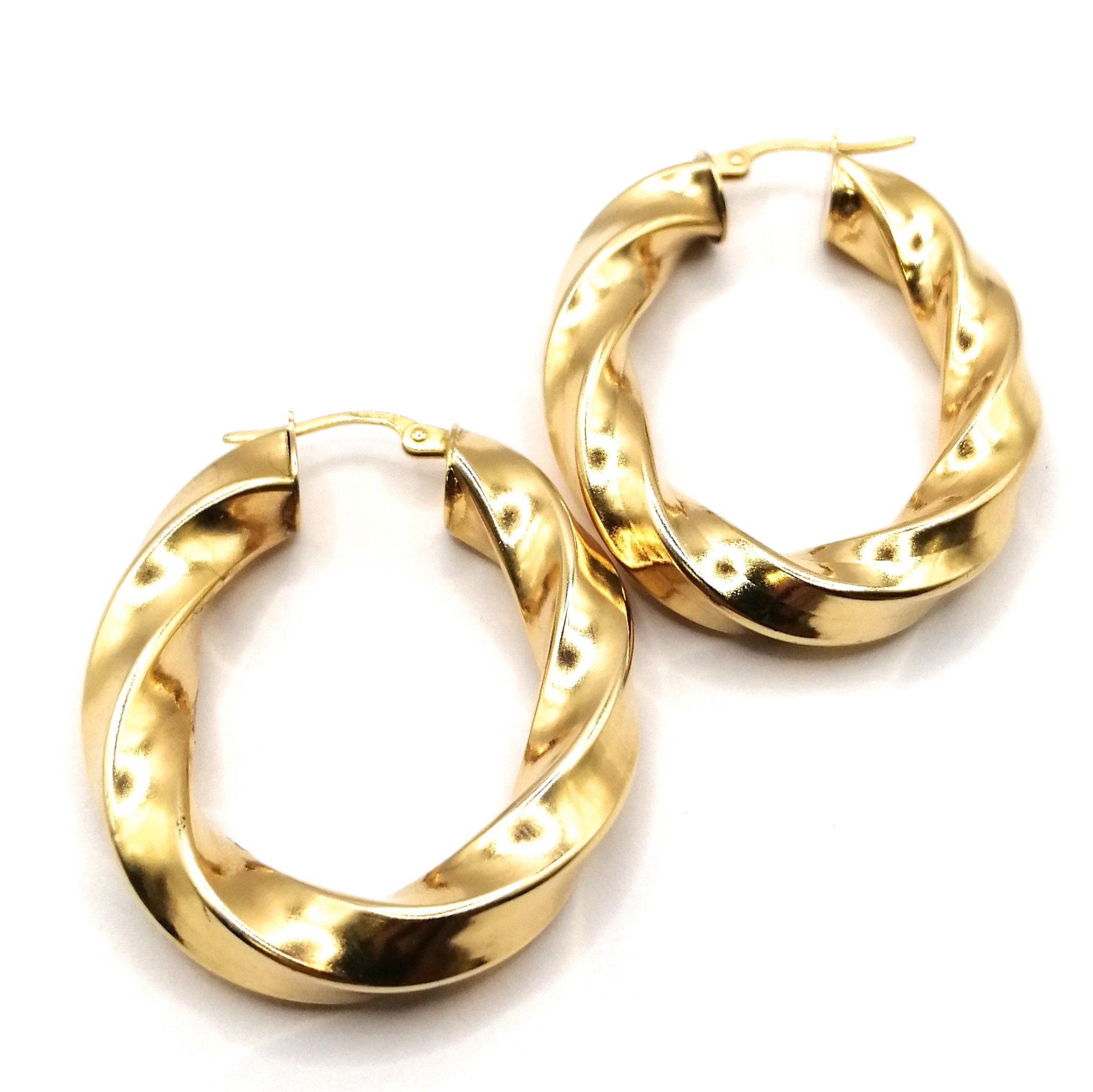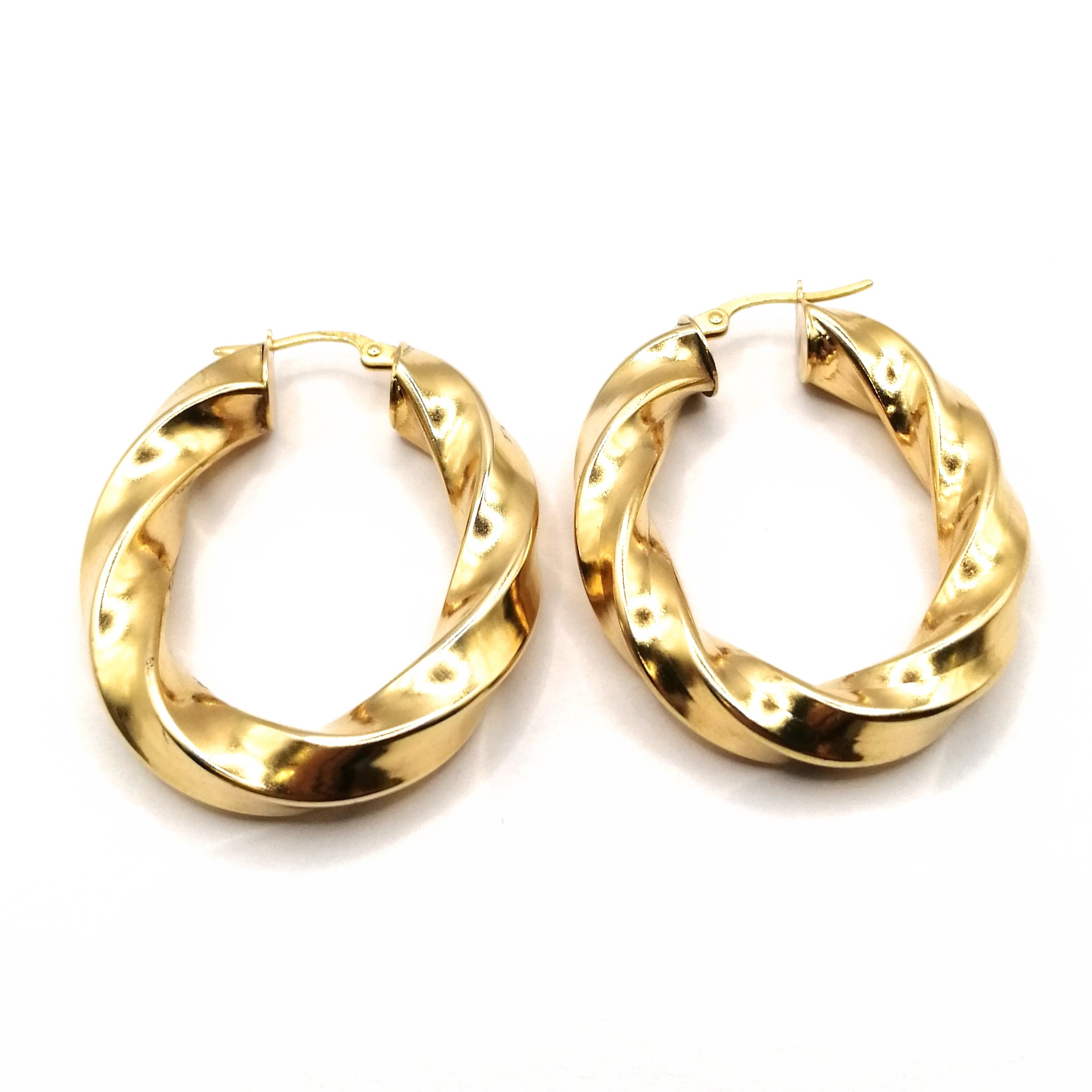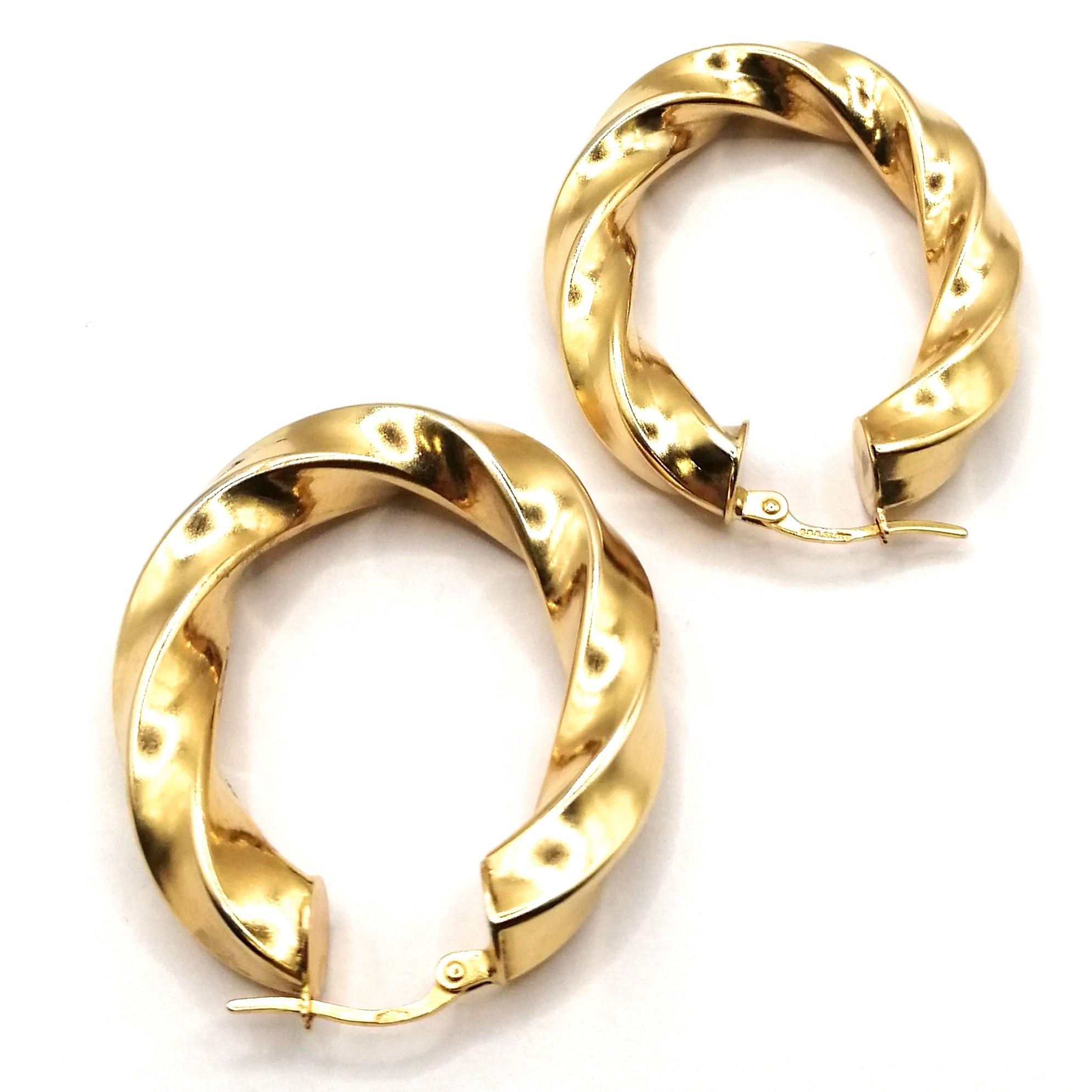 Shape & Design: Oval hoops with intricate twist detailing