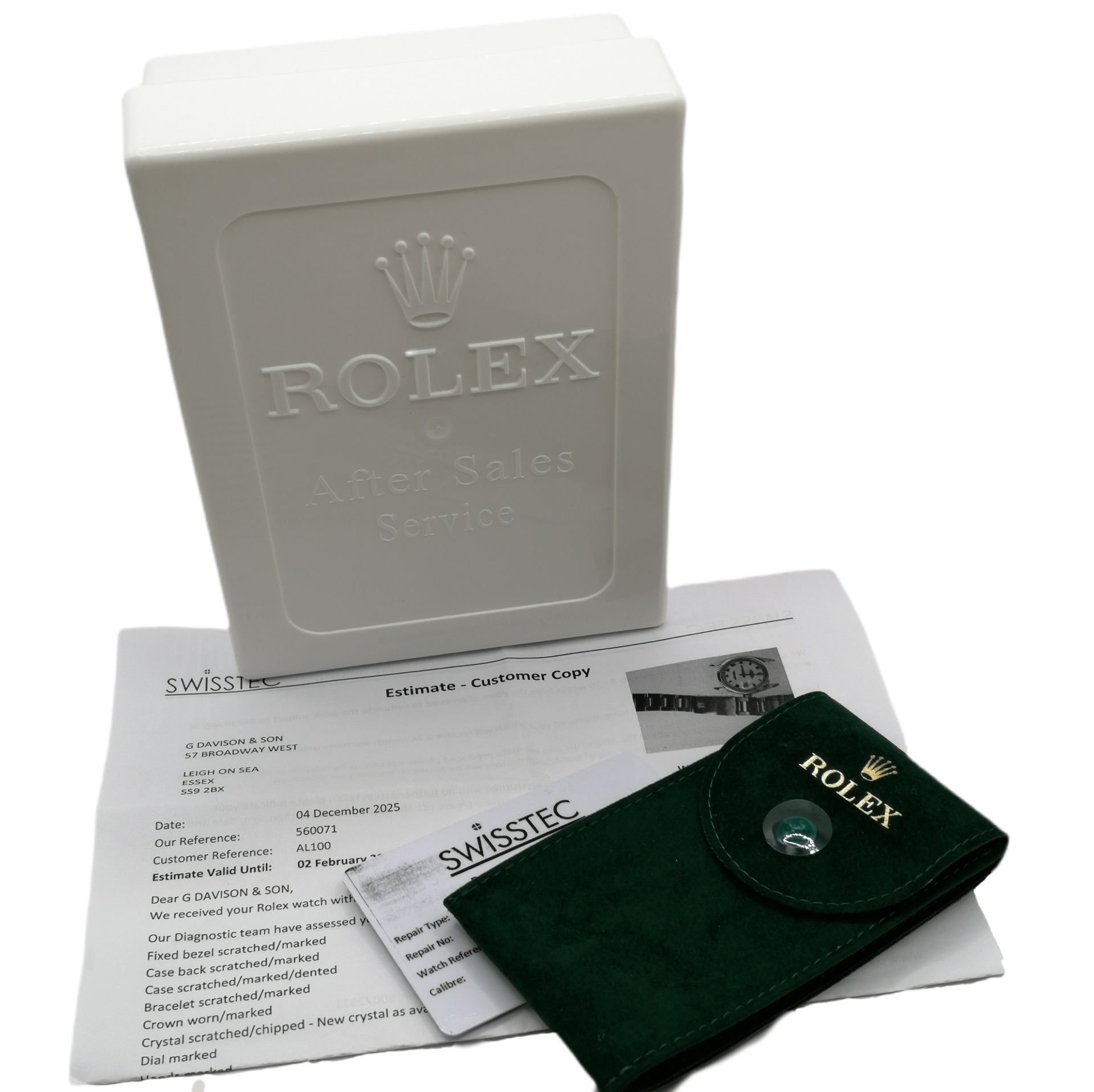 Supplied with papers and a Rolex complimentary after-sales presentation box, this watch has been thoroughly inspected and is covered by a 2-year in-house warranty for complete peace of mind.