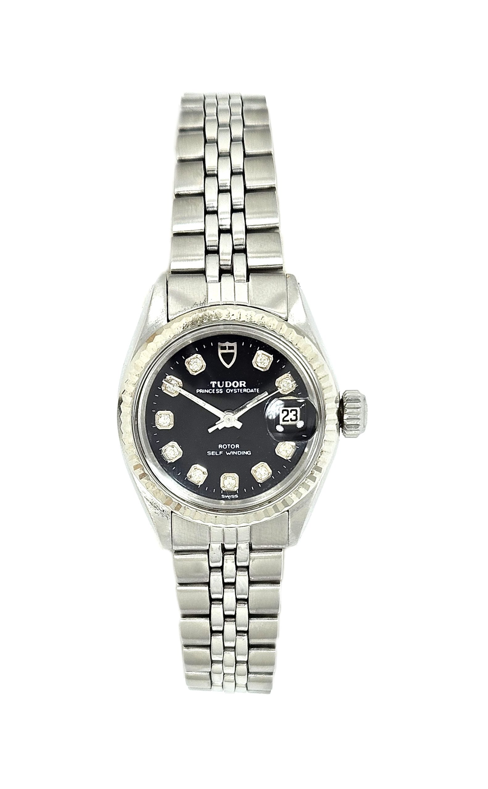 25mm Steel Case with White Gold Fluted Bezel